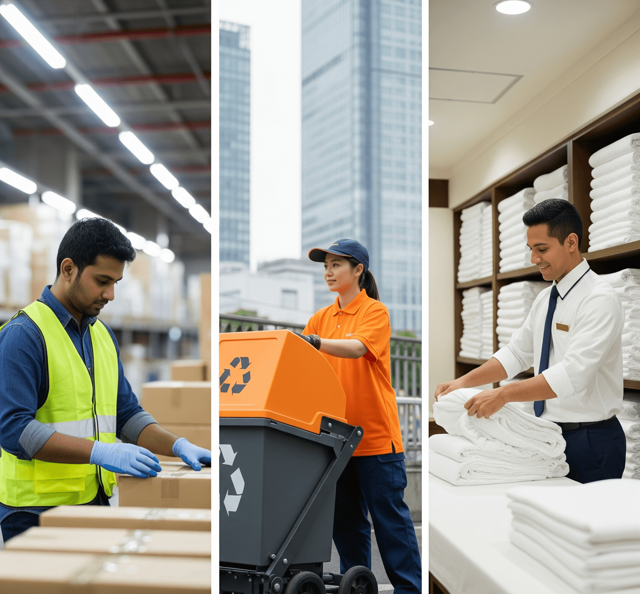 ホテル・病院・介護施設等でのリネン需要増加により、リネン供給業界でも人材確保が課題となっています。特定技能「リネン供給」では、以下のような業務が含まれます: